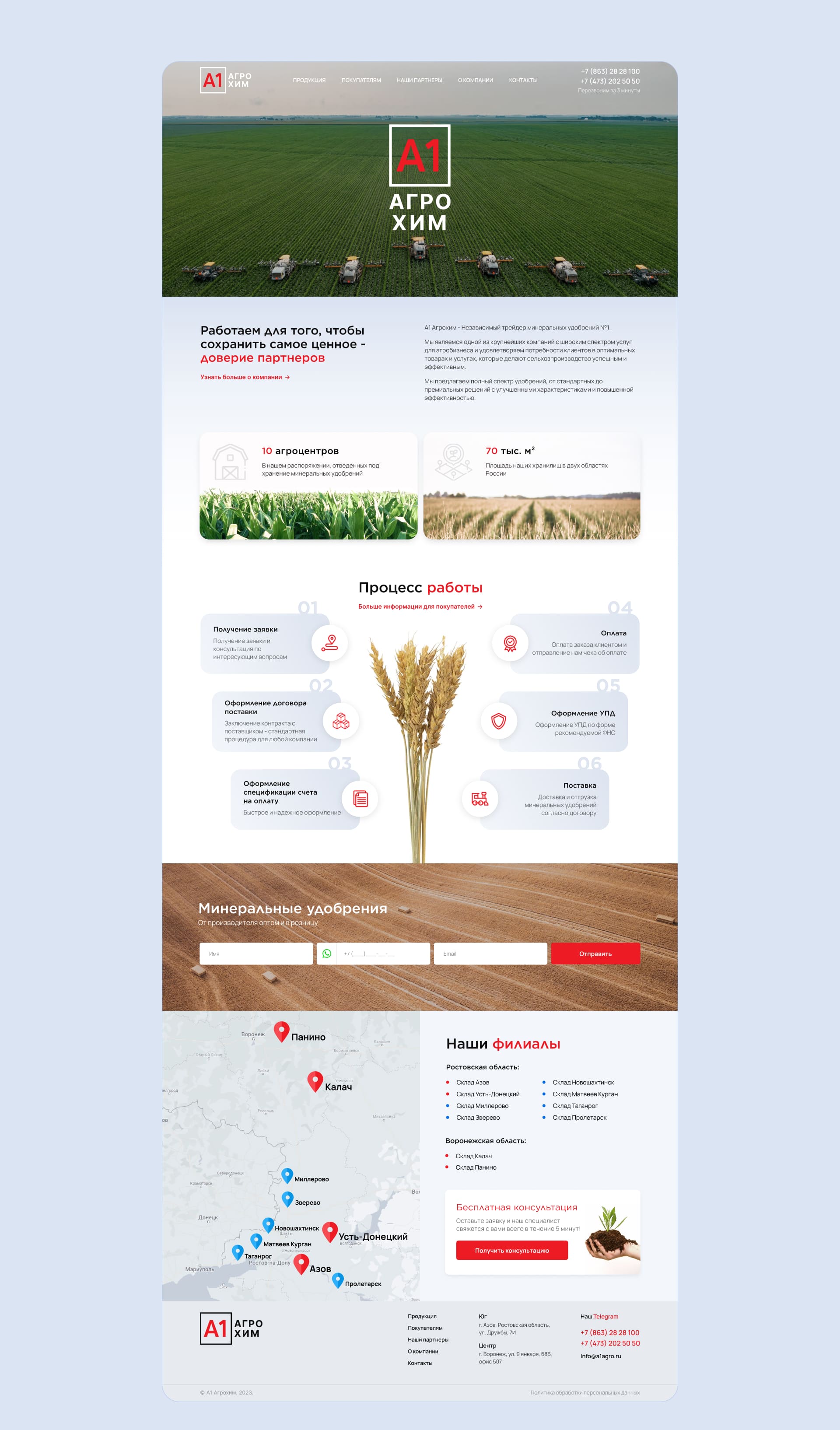A1-Agrokhim is an independent trader of mineral fertilizers. A presentation site with an emphasis on agricultural aesthetics was developed for this company.А1-Агрохим — независимый трейдер минеральных удобрений.