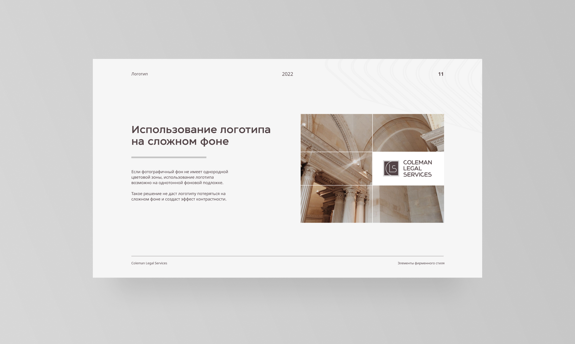 Coleman Legal Services (CLS) is a law firm whose slogan is: "Within the Law. Beyond Competition." A logo was developed for this company, as well as other elements of the corporate identity. In the logo, it was decided to use the abbreviation CLS in a stable square figure.Coleman Legal Services (CLS) — юридическая фирма, слоган которой: "В рамках закона. Вне конкуренции". Для этой компании был разработан логотип, а также другие элементы фирменного стиля. В логотипе было решено использовать аббревиатуру CLS в устойчивой фигуре - квадрате.