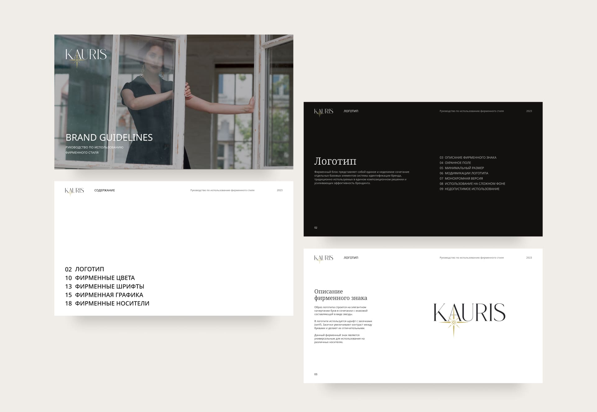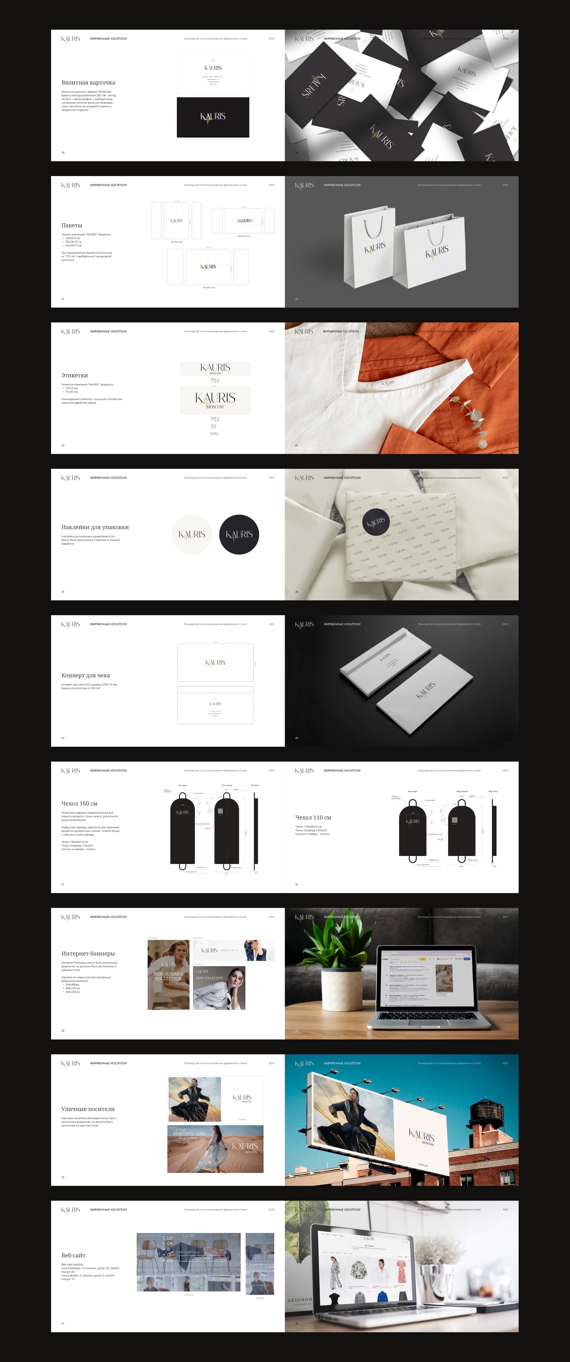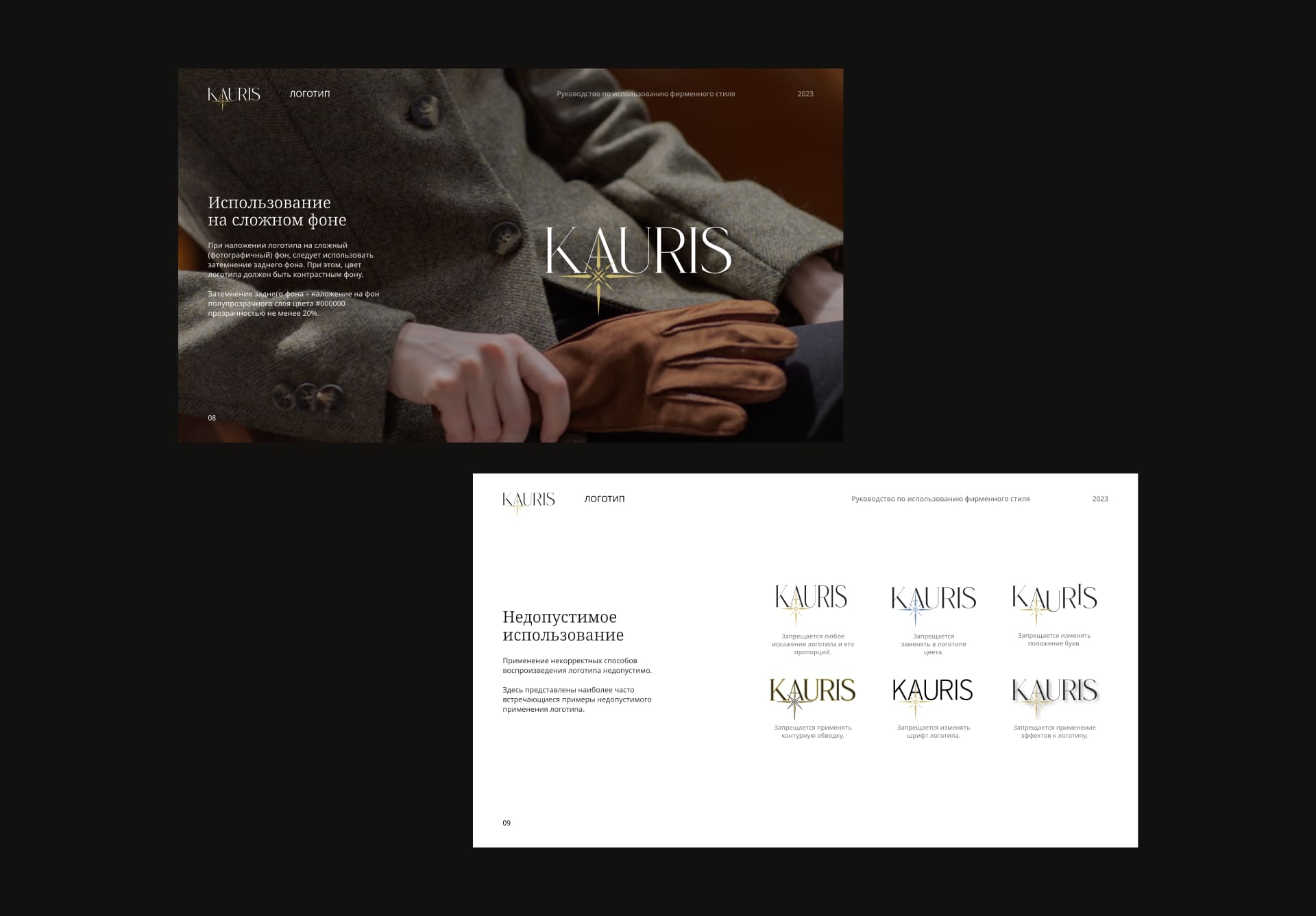 Brand book for women's clothing store Kauris. Kauris is a premium clothing brand and when creating its corporate identity, the emphasis was on minimalism and elegance.Брендбук для магазина женской одежды Kauris. Kauris - премиальный бренд одежды и при создании фирменного стиля упор делался на минималистичность и элегантность.