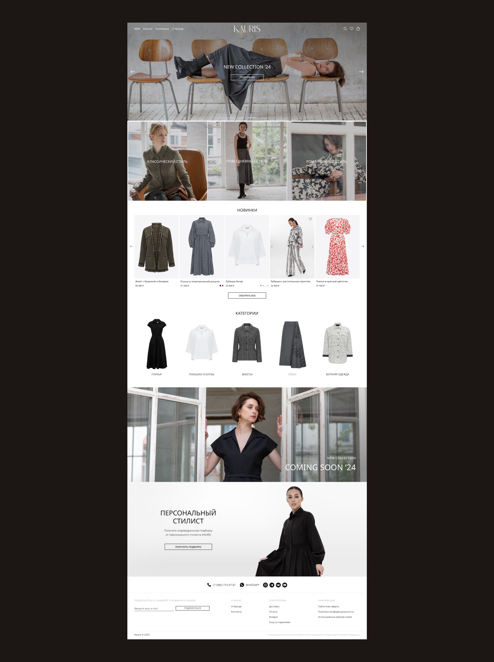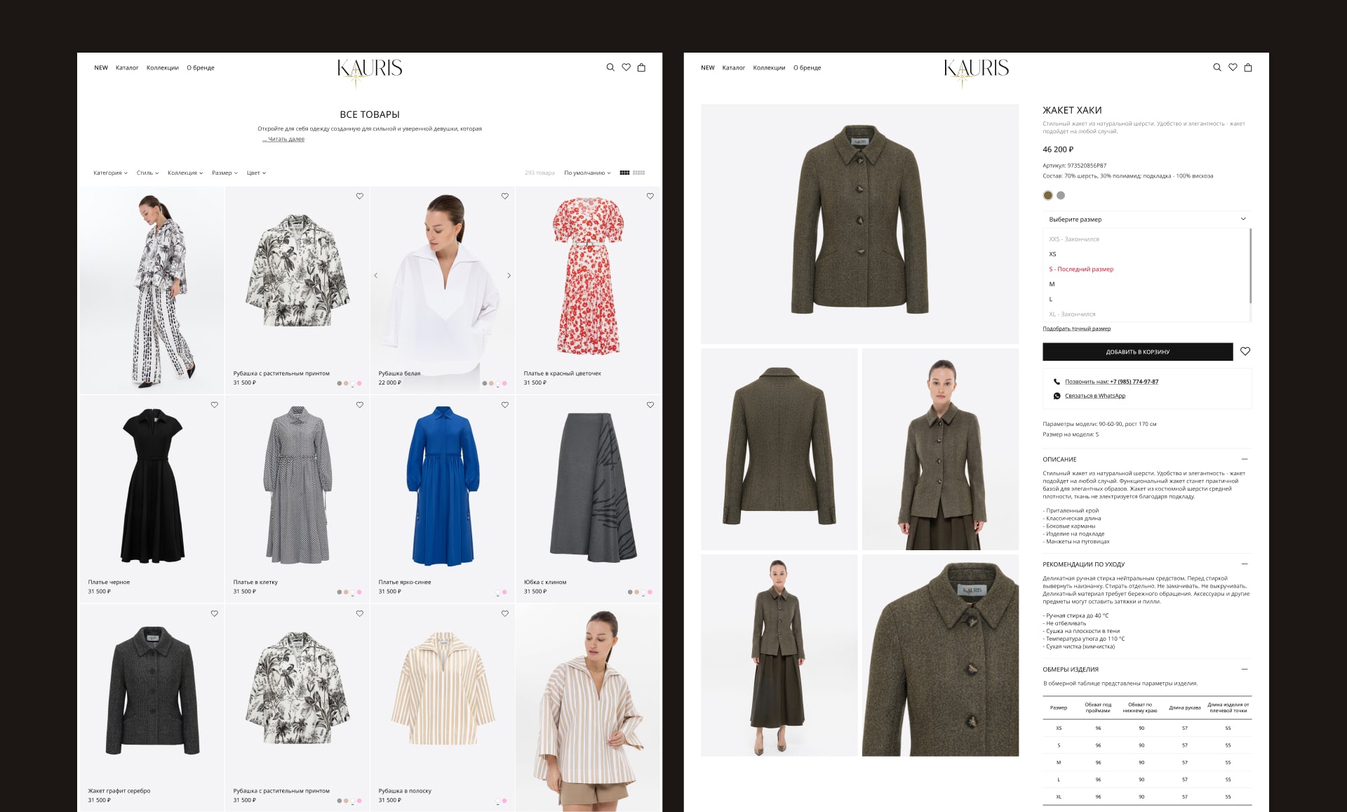 Kauris is a Russian brand of premium women's clothing. When developing the design, it was important to achieve maximum information in a minimalistic wrapper. The site is under development and will be available soon via link.Kauris — российский бренд женской одежды премиум-сегмента.