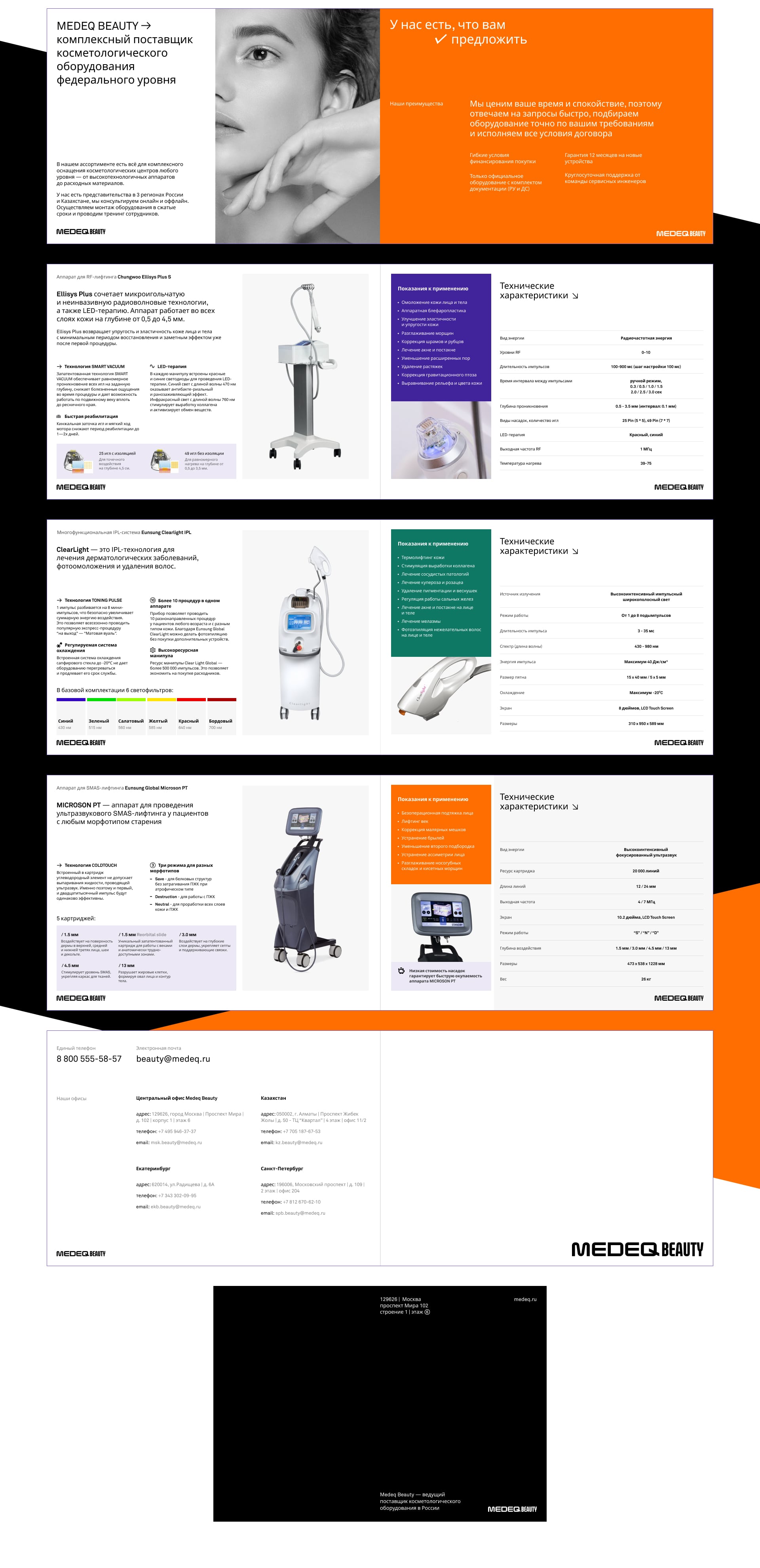 Medeq is a multi-profile company. The task was to create a catalog for the Medeq Beauty division, while maintaining the company's corporate style.Medeq — многопрофильная фирма. Задачей было выполнить каталог для подразделения Medeq Beauty, сохранив фирменную стилистику компании.