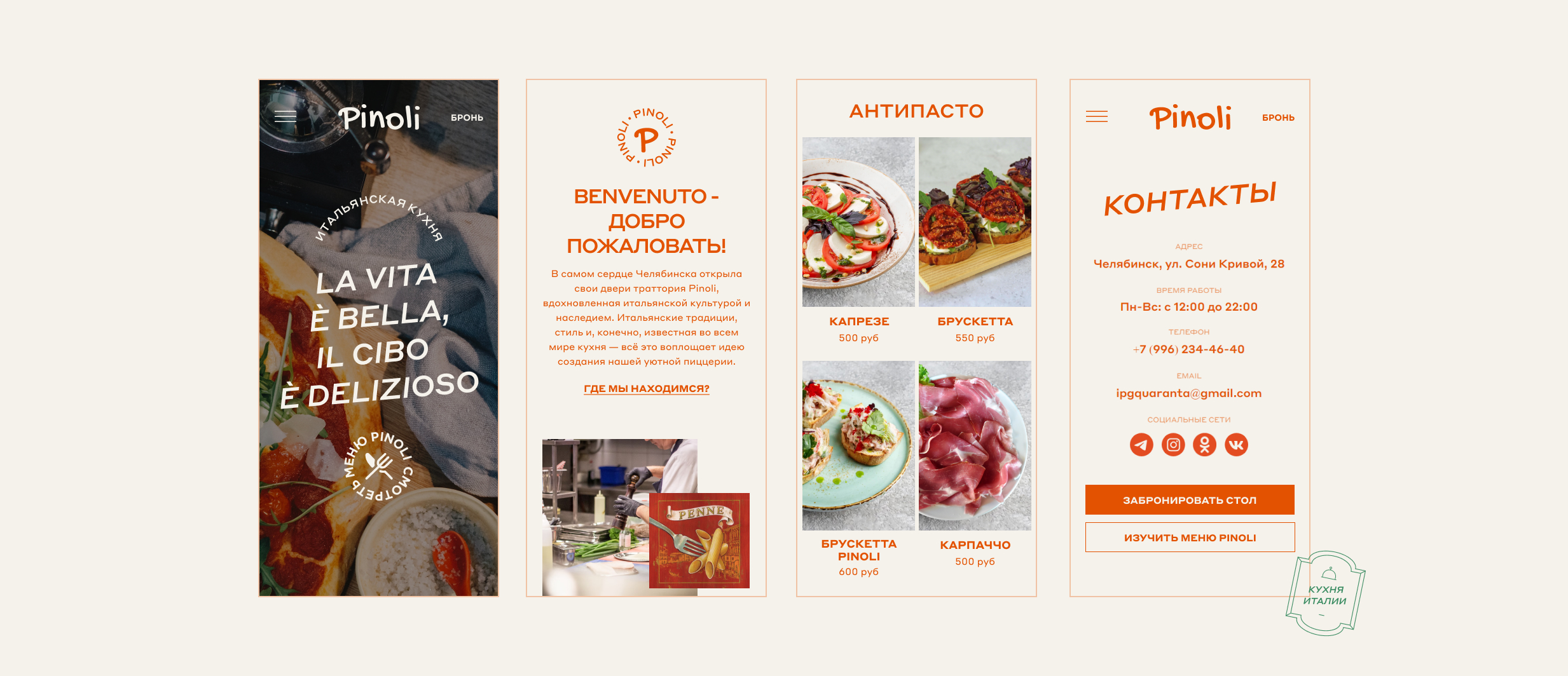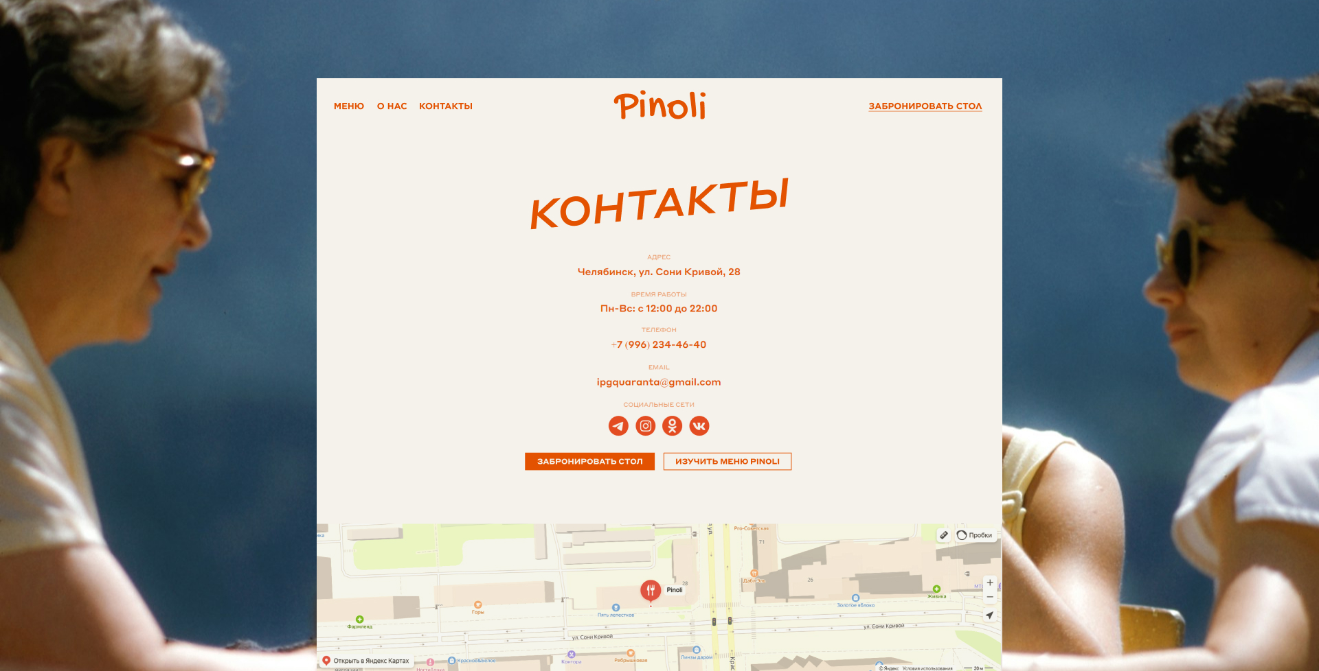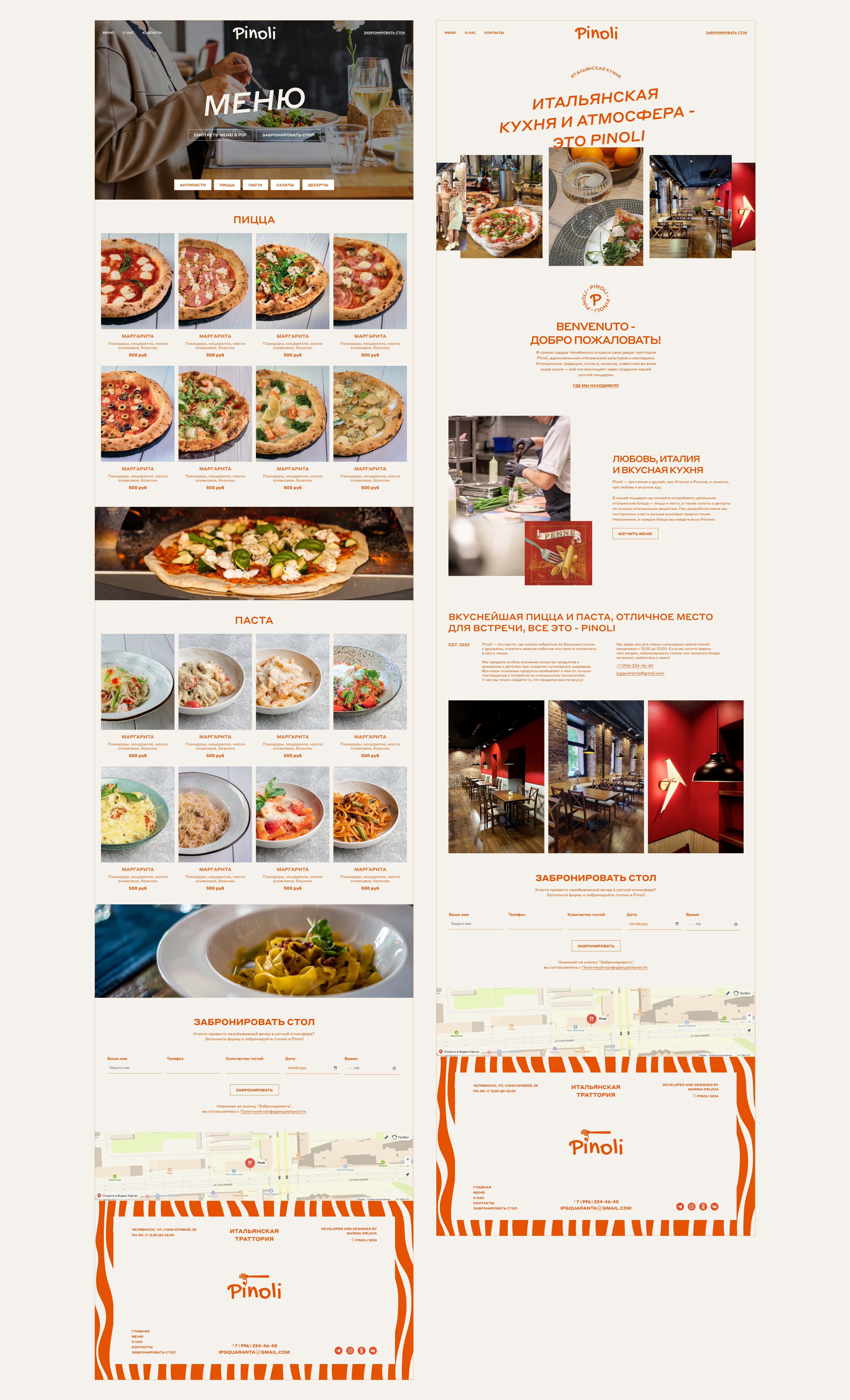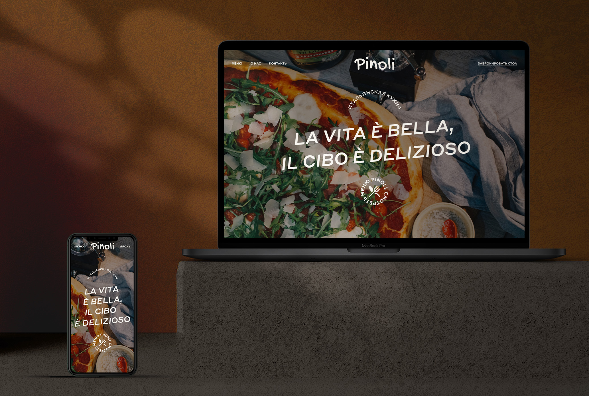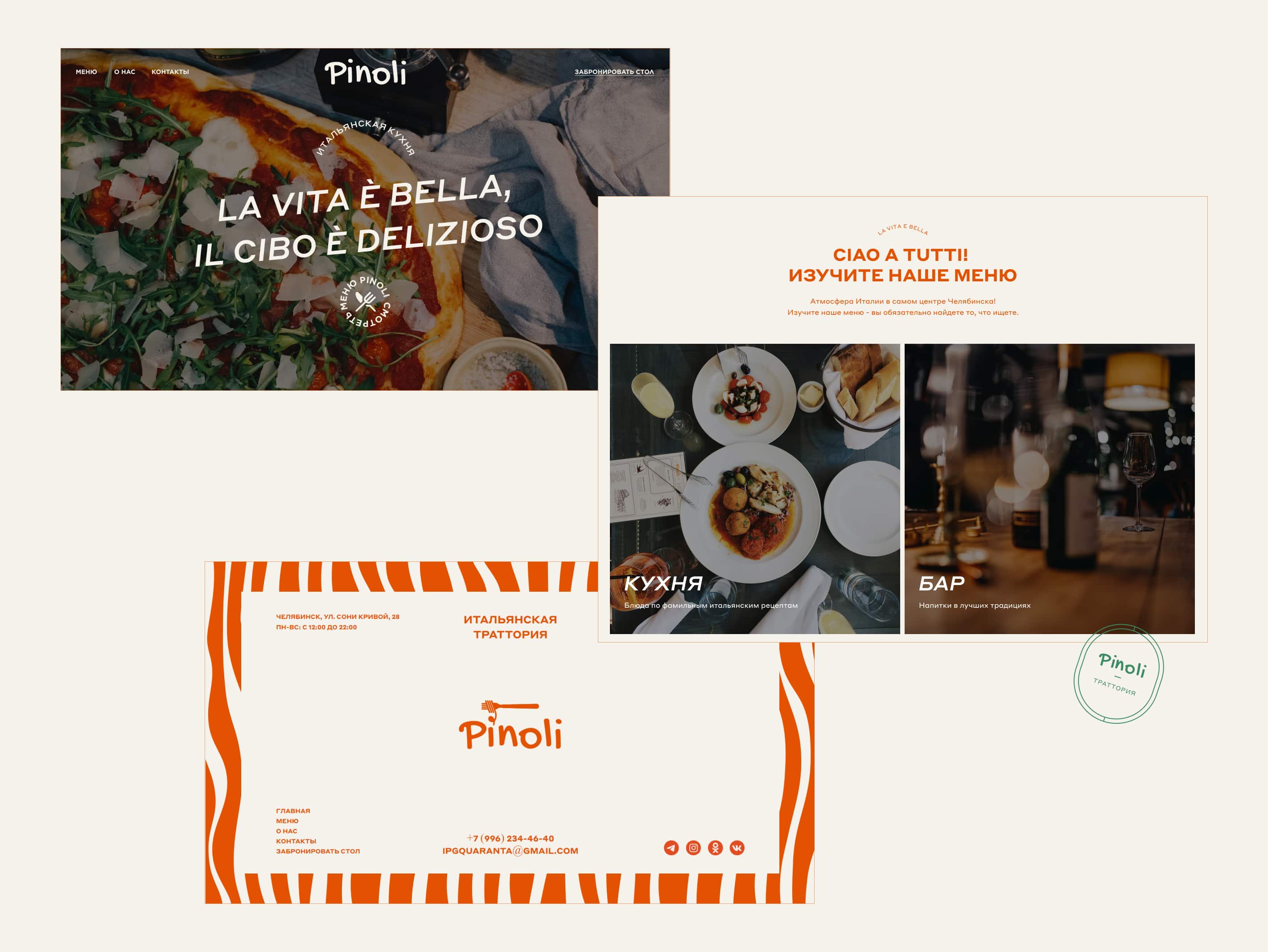 Pinoli is an Italian restaurant in Chelyabinsk. The existing website https://pinoli.ru/, developed by me on the Tilda platform in 2022, was redesigned. Various elements of the brand's corporate style were added to the new concept. The website is available via link.Pinoli — ресторан итальянской кухни в г. Челябинск. Был произведен редизайн существующего сайта https://pinoli.ru/, разработанного мной на платформе Tilda в 2022 году. В новой концепции были добавлены различные элементы фирменного стиля бренда. Сайт доступен по ссылке.