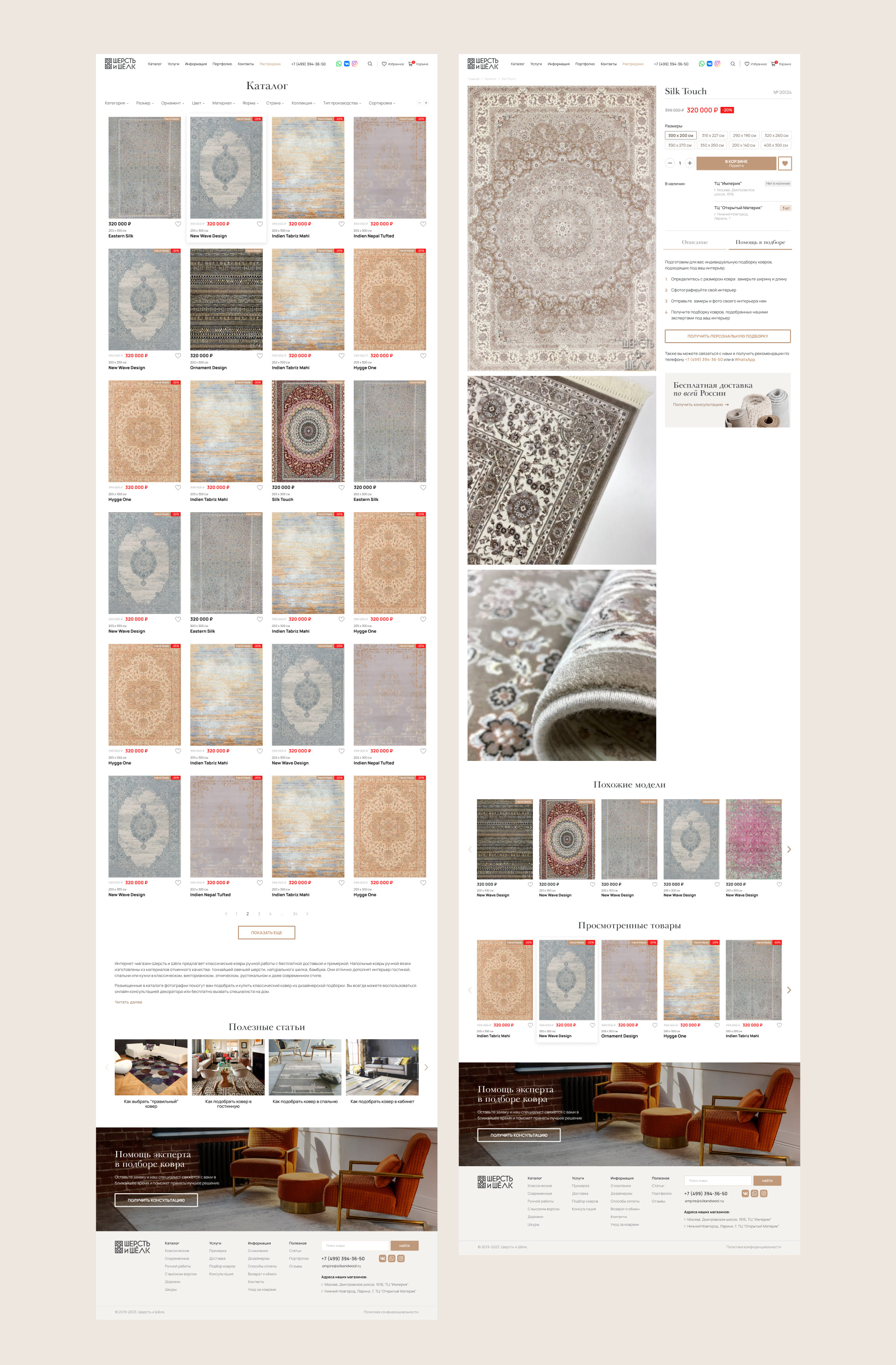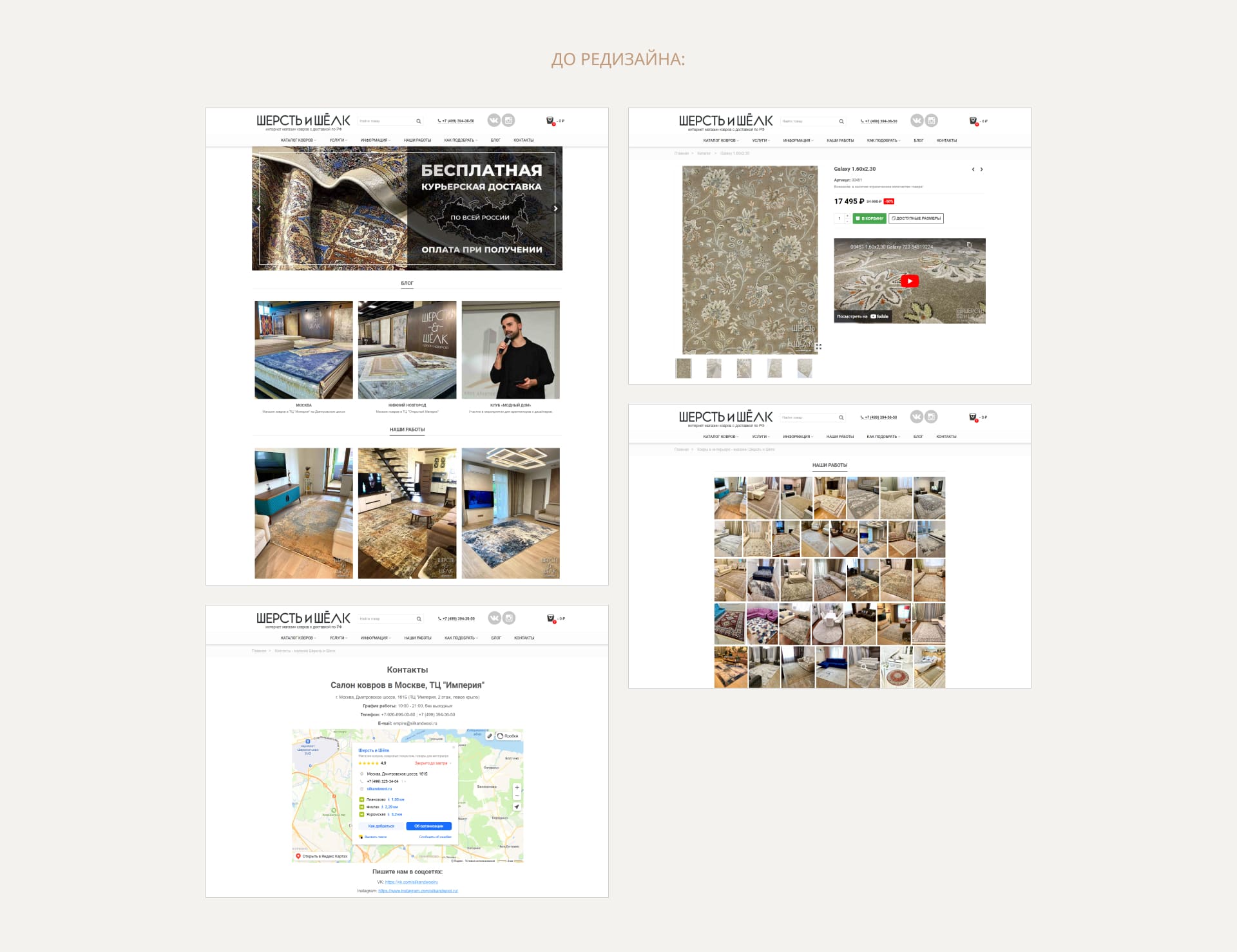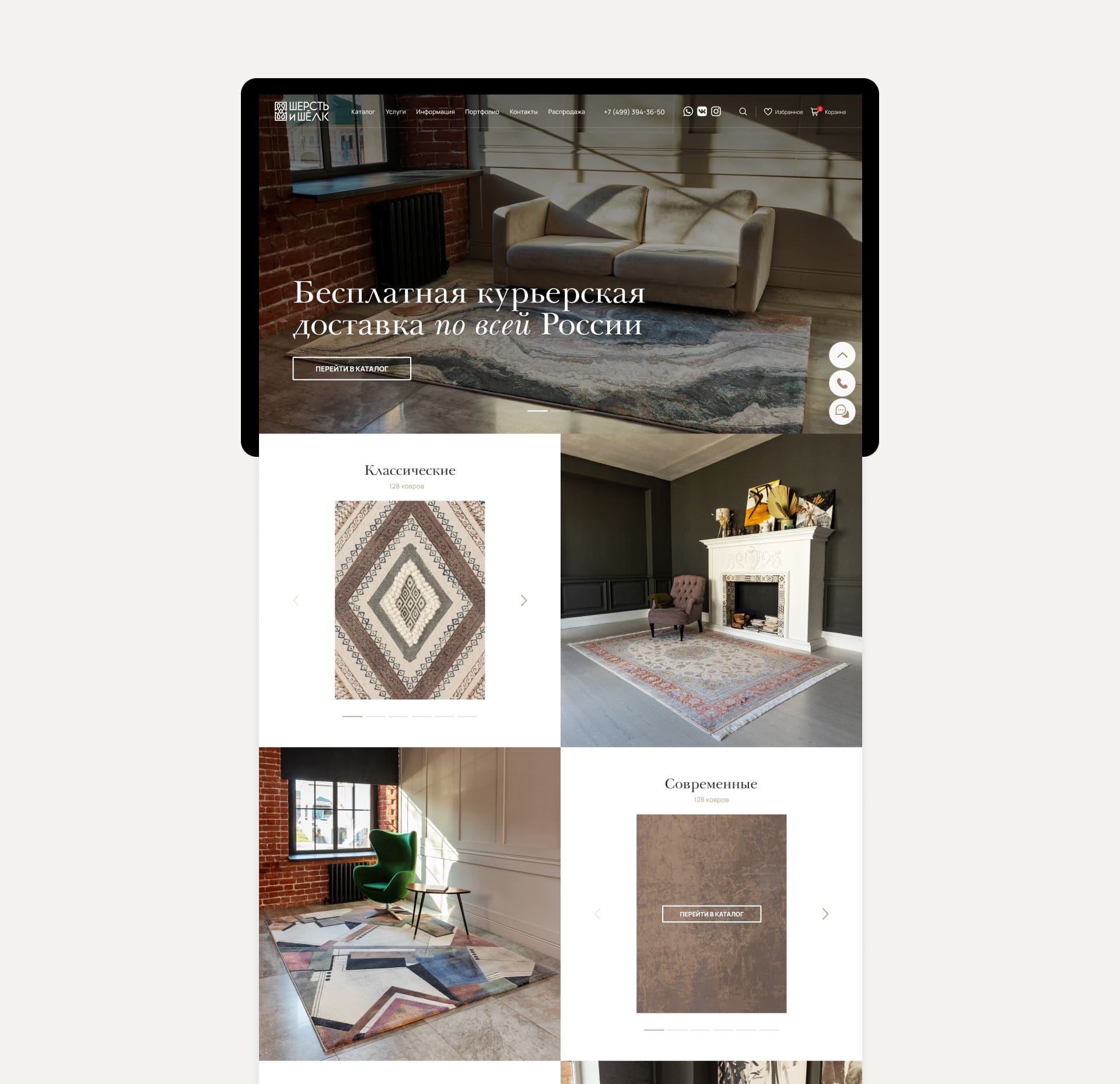 Redesign for the Silk and Wool carpets website. The website is availible via link, and the pre-redesign version can be viewed at the bottom of this page.Редизайн интернет-магазина ковров "Шерсть и Шелк" реализован в современном стиле с упором на качественные фото. Вебсайт доступен по ссылке, а версию до редизайна можно посмотреть внизу этой страницы.