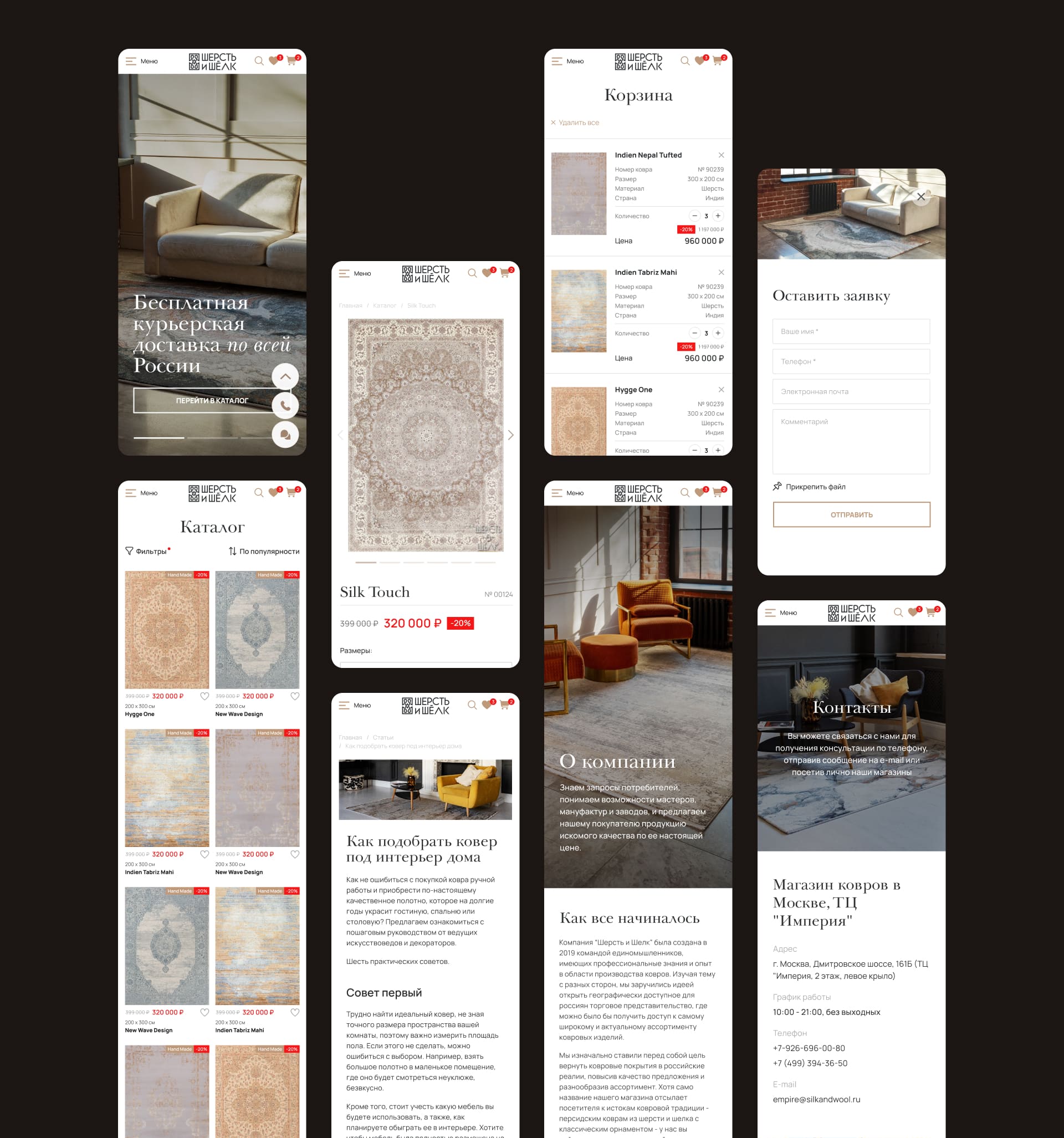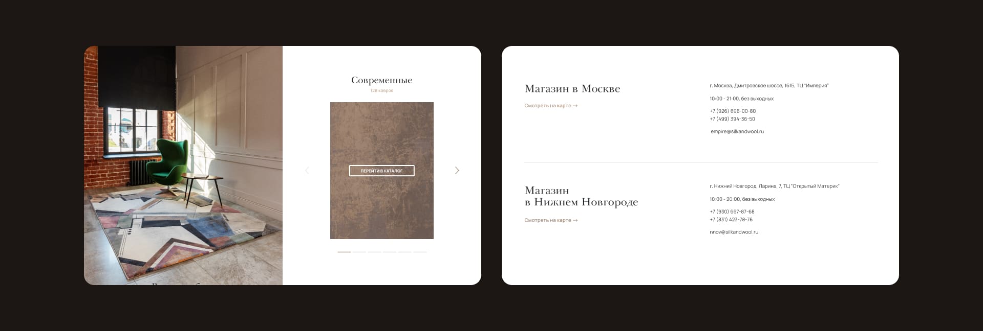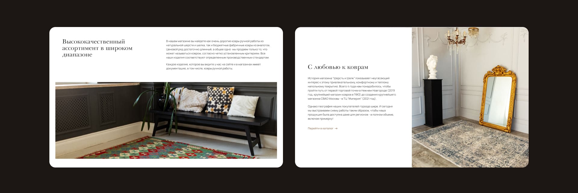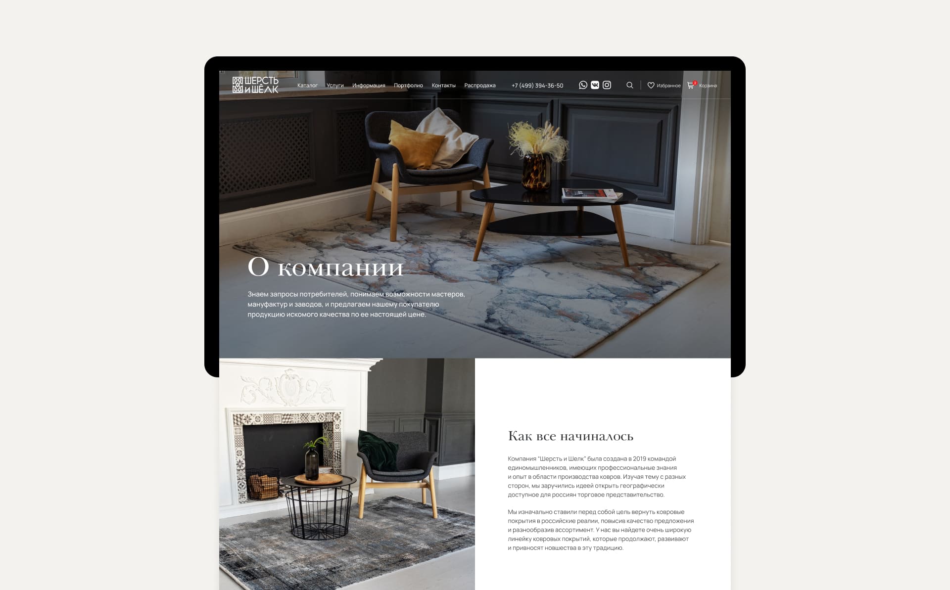 Redesign for the Silk and Wool carpets website. The website is availible via link, and the pre-redesign version can be viewed at the bottom of this page.Редизайн интернет-магазина ковров "Шерсть и Шелк" реализован в современном стиле с упором на качественные фото. Вебсайт доступен по ссылке, а версию до редизайна можно посмотреть внизу этой страницы.